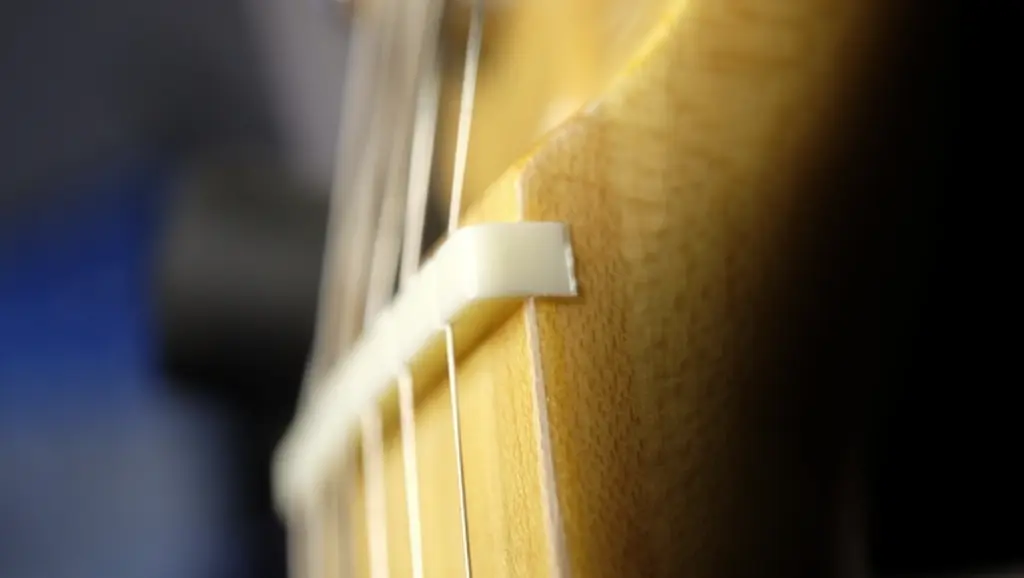 Mit zwei Fingern den Hals entlang. Der Sattel, laut Thomann 43 mm breit, ich messe 42 mm, ist leicht versetzt eingebaut. Links fehlt vielleicht ein Zehntel, welches rechts nun übersteht.
