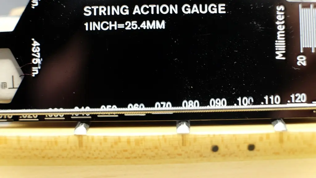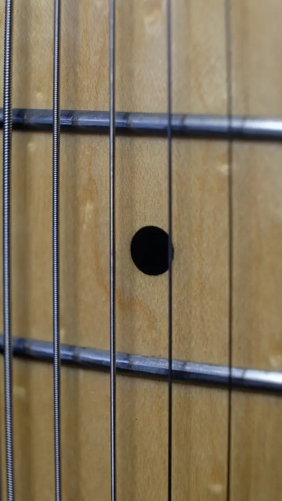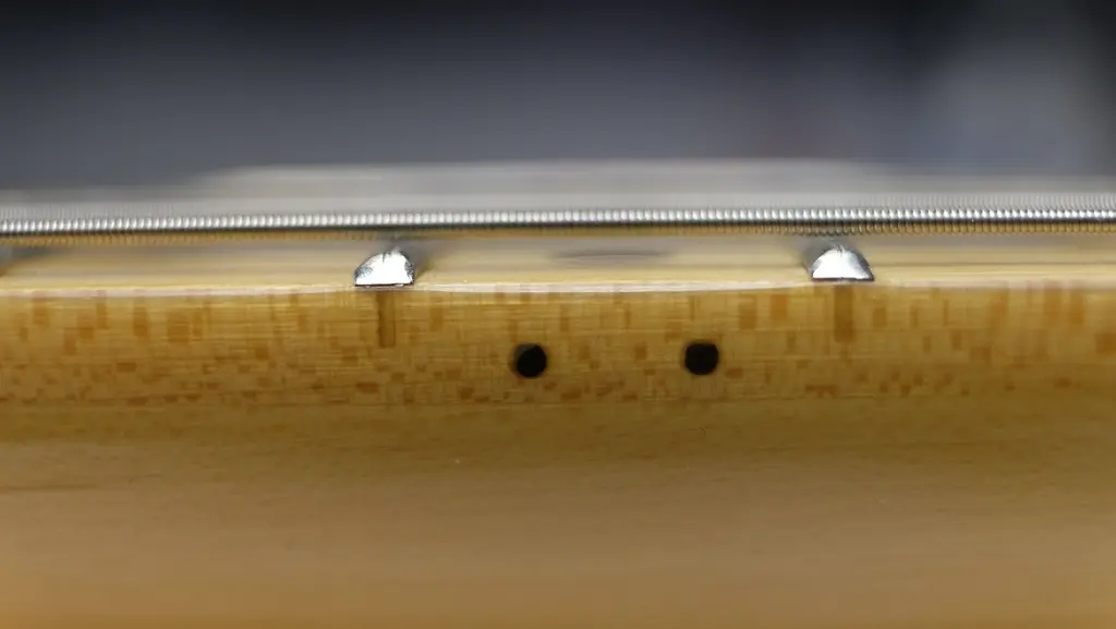 Die Bünde sind gut eingepaßt, bis auf zwei, da fühle ich unter der Fingerkuppe eine leichte Rauheit.