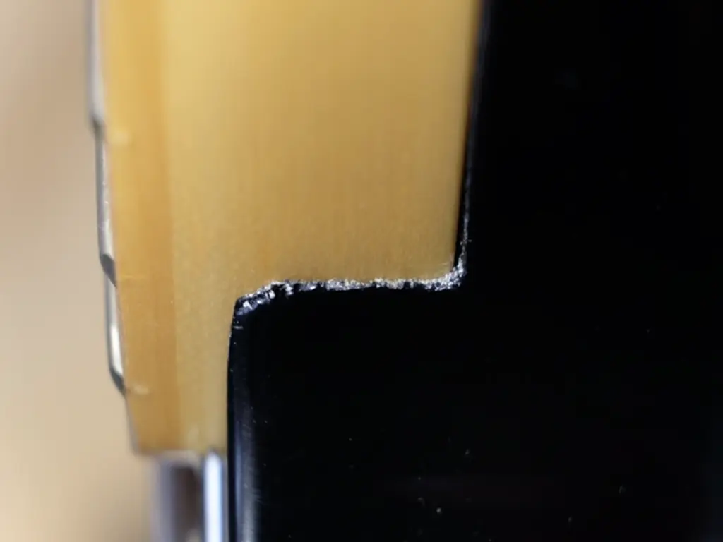 Das sieht auf dem Bild schlimm aus, in Wirklichkeit fühle ich es kaum, und es sollte mit zwei, drei Feilenhieben oder einem Stück Schleifpapier schnell behoben sein.