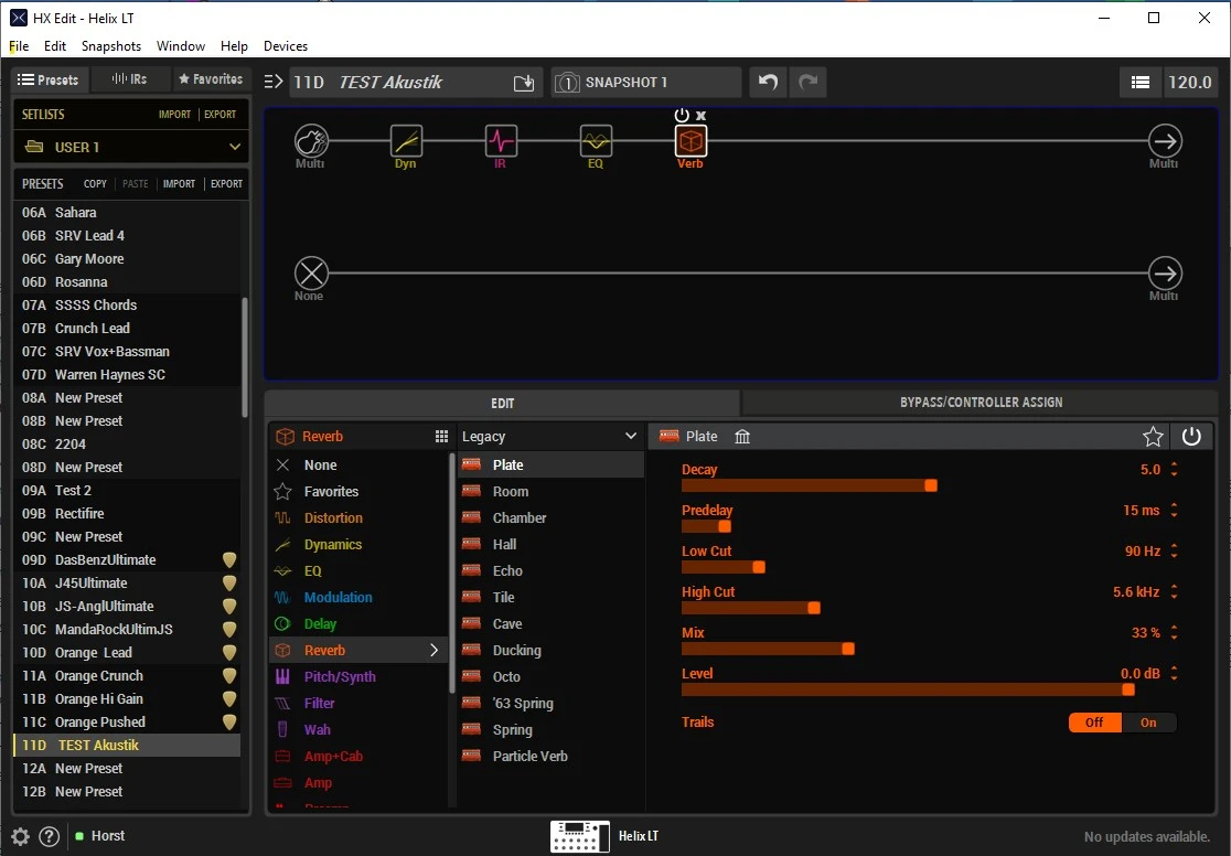 Ich spiele sowohl akustische als auch elektrische Gitarre. Im Regelfall allerdings nicht in der gleichen Formation, live also immer "entweder oder". Mein akustisches "Rig" findet ihr in der Galerie unter dem Namen Ultima 2. Eigentlich funktioniert das alles immer noch prima, allerdings hätte ich doch gerne meinen eigenen Hall dabei und das alles ist mir ein wenig zu groß und schwer geworden. Ich erwäge also derzeit den Erwerb eines Tech21 FlyRig Acoustic.