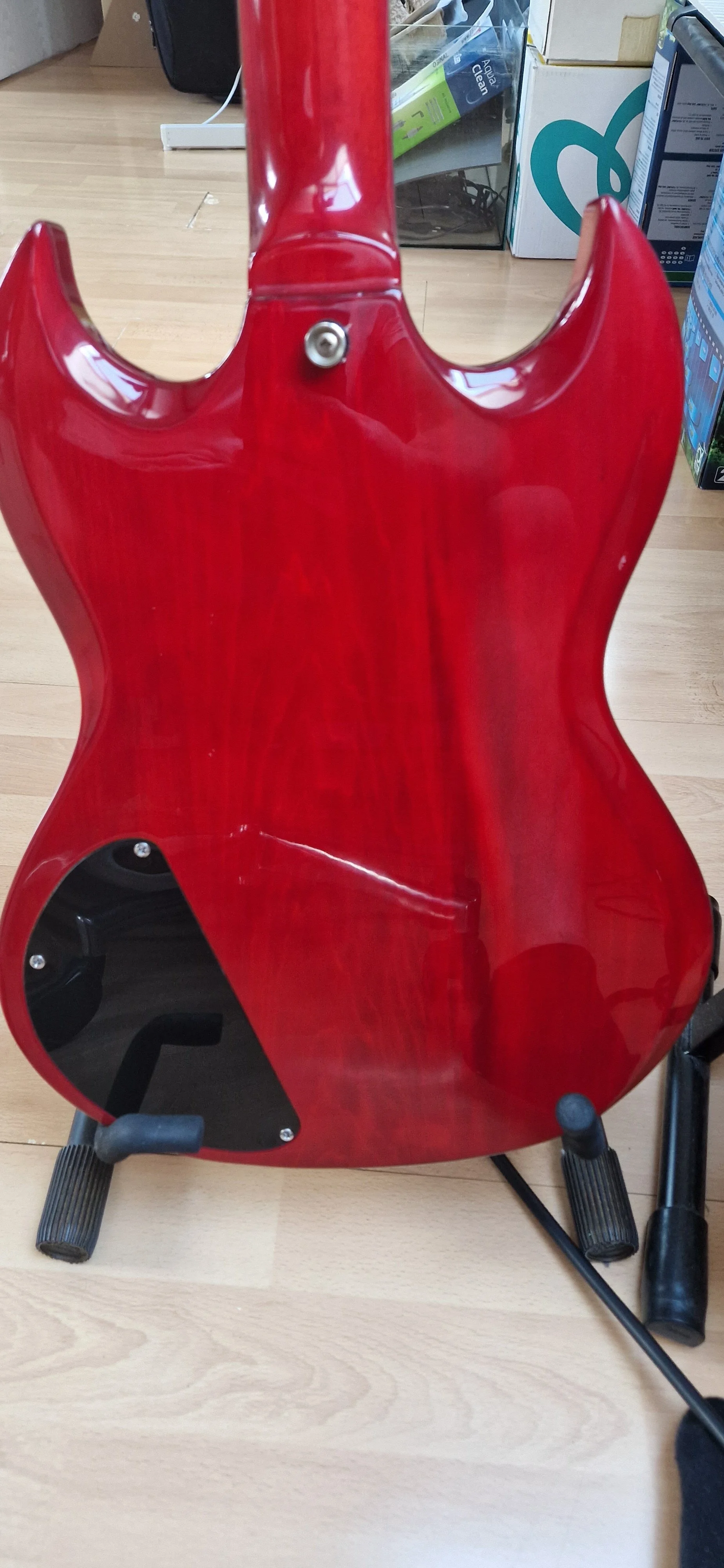 Ich finde leider keine vergleichbare Gitarre und zu dem Brett gibt es keine technischen Daten. Ich weiß nur, dass es ein Palisander-Griffbrett mit Ahornhals ist. Aber es wäre mal spannend zu wissen, woraus der Korpus besteht.