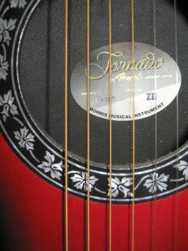 Da klingelte dereinst ein jemand der etwas zu tun hatte mit einer - damals - fränkischen Firma die so Bassgitarren baute und Instrumente importierte. Er legte mir diese rote Morris aufn Tisch, die er aus dem Müllcontainer gerettet hatte, Transportschaden, Versicherungsfall, Reperatur finanziell nicht sinnvoll. Ich hab auch lange gesucht biss ich den kleinen Riss am Hals gefunden habe, Tröpfchen Leim hinein und über nach ne Schraubzinge dran, hält bis heute. Dafür musste ich dann den nächsten Kneipenabend zahlen, waren so um die 20,- DM.