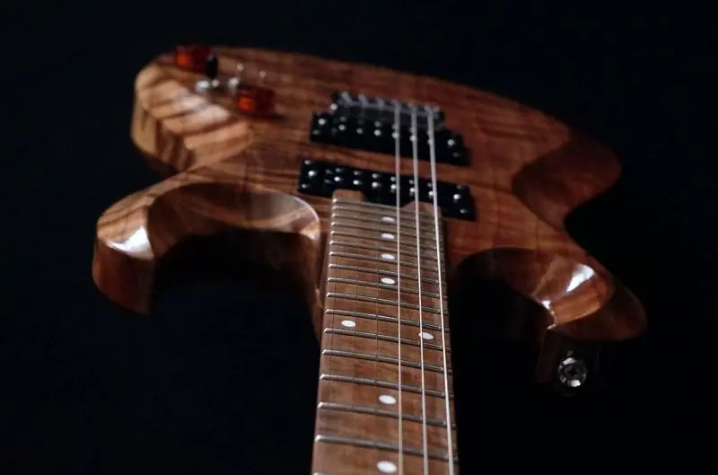 hier wurden Hölzer verwendet, die so, im Allgemeinen nicht zum Einsatz kommen. Der Korpus besteht aus einer 57mm dicken, einteiligen Sequoia,