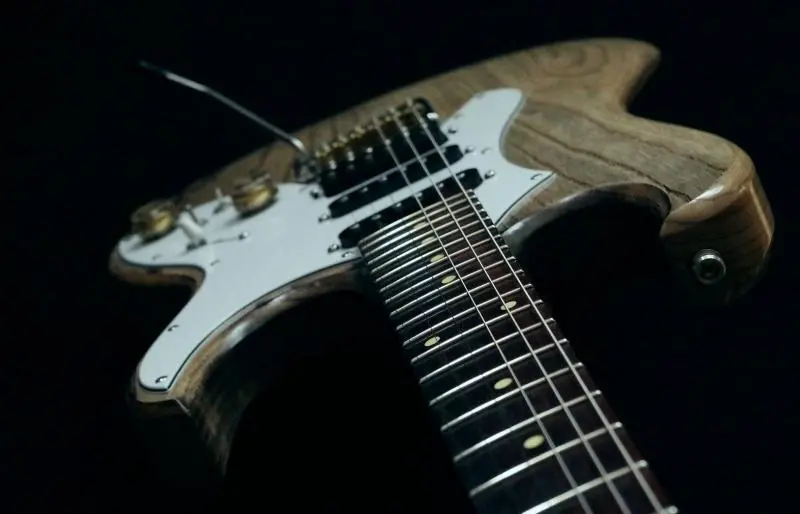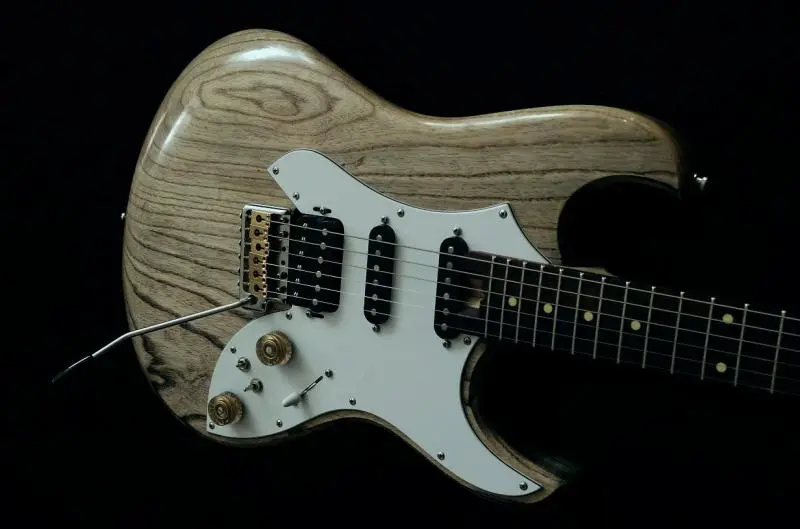 Das Tremolo ist von AUMSEN ( exzellente Arbeit - CNC ) und die Pickups sind aus eigener Fertigung. Das Endergebnis ist ein sehr flexibles Instrument, man kann sozusagen alles mit Ihr spielen. Wiegen tut Sie 3,5 kg.